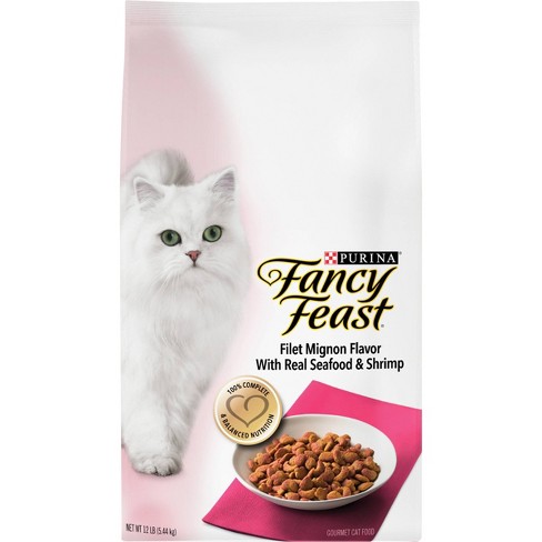 Gourmet Dry Cat Food is Fancy Feasts original dry cat food. Bag - Purina Fancy Feast Dry Cat Food Filet Mignon Flavor With Real Seafood Shrimp Filet mignon flavor with real shrimp and seafood for a delicious taste 100 complete and balanced nutrition Lightly cooked and basted to a delicious delicately crunchy finish. Food Toppers and Complements Purely Fancy Feast Filets are filets of chicken or seafood.